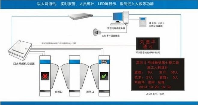 人工考勤是最傳統的考勤方式,但這種方式實施的難度大。工地人流量大,考勤管理人員在對人員進行登記時難保不會出現失誤。傳統考勤管理系統有缺陷,建筑工地意識到了這些問題,紛紛采用考勤管理系統,新的系統在考勤管理方面比人工考勤更加規范化,避免了人工考勤的失誤。為了工地更加安全化的管理,在工地出入口安裝通道閘門禁考勤系統和LED屏系統,共同組成工地出入口考勤系統。門禁考勤系統由閘機、控制板、讀卡器、軟件組成,LED屏由模組、電源、箱體和控制板組成。門禁考勤系統使建筑工地人員管理逐步規范化,效率化。
